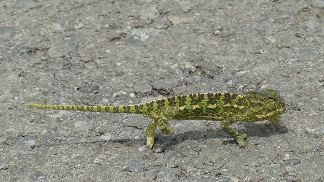 Ein Chamäleon haben wir bisher noch nie gesehen, plötzlich quert so ein possierliches Tierchen unseren Weg. Schnell war es nicht, aber jeder Winkel der Umgebung und die komischen Zweibeiner wurden beäugt. |