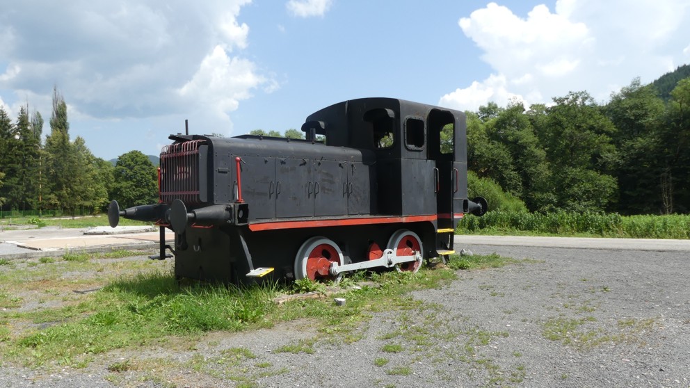 Kleinbahnlok am Straßenrand hinter Podbrezova Richtung Brezno. Bei