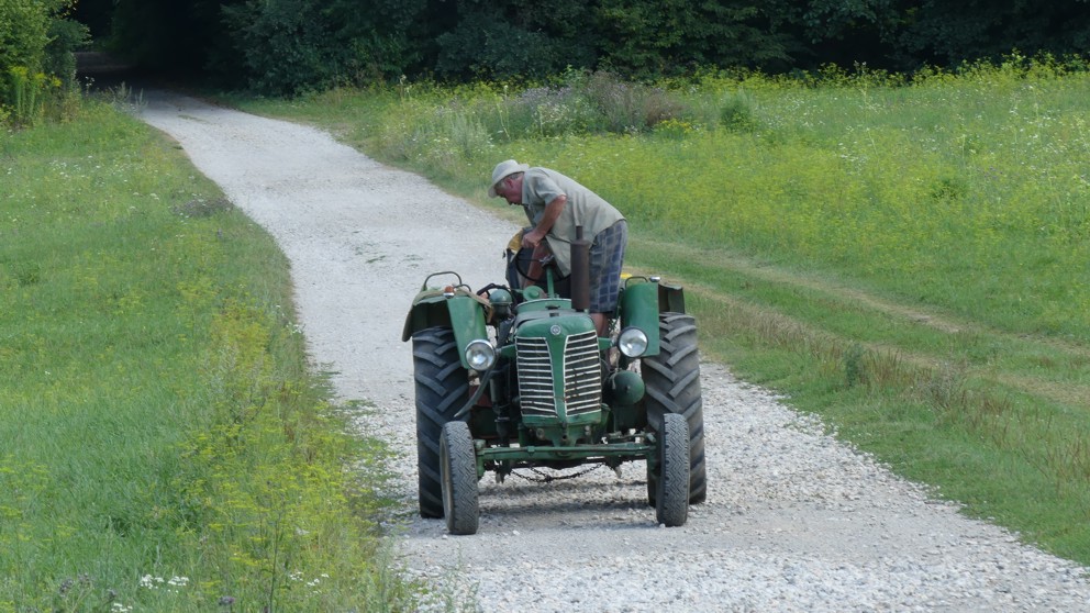werden wir von einem weit hörbaren singenden Treckerfahrer abgelenkt