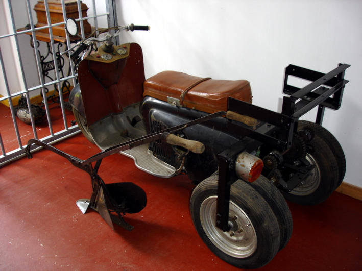 Das erste Ziel ist Wünsdorf, welches lange Zeit militärisch geprägt und bis kurz nach der Wende fest in russischer Hand war. Heute mausert sich Wünsdorf zur Bücher- und Bunkerstadt. In den nach unserem Geschmack fast schon zu sehr modernisierten Gebäuden befinden sich heute mehrere gut sortierte Antiquariate und verschiedenen Museen. Wir nutzen die Bücherläden zum Auffüllen unserer Vorräte, wobei die Bücher eher preiswert, denn billig sind. In einer ehemaligen Militärbaracke ist fast die gesamte Geschichte der motorisierten Zweiräder der DDR zu bewundern. Dicht an dicht stehen alte MZ, Simson, Jawa und BK von alltagsgetreu bis perfekt restauriert. Eine Highlight ist ein rollerbasierender Pflug Marke Eigenbau – der wahre Vorläufer aller Trikes. In der Woche ist das Museum nur auf Wunsch geöffnet, die Mitarbeiter des Museumshops erfüllen uns den Wunsch gerne. |