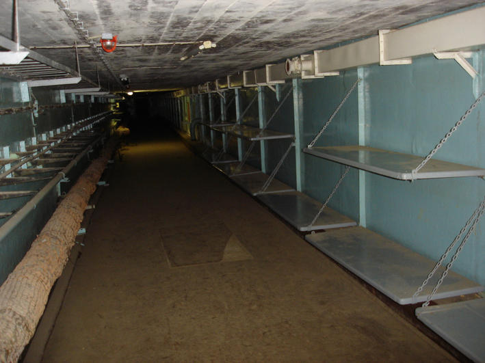 Wenige Meter entfernt befinden sich die gewaltigen Reste des Bunkers „Zeppelin“ – im postdeutsch auch bekannt unter dem Namen „Amt 500“. Durch eine dicke Stahltür gelangen wir in die Unterwelt. Vieles ist aus den Anlagen entfernt oder zerstört – aber auch die vorhandenen Überreste sind faszinierend. Nach dem zweiten Weltkrieg und der Sprengung der oberirdischen Anlagen von Maybach I wurde die Anlage einige Jahre nicht mehr genutzt. Wobei „nicht genutzt“ nicht ganz der richtige Ausdruck ist, denn einige Häuser in Wünsdorf und Umgebung wurden seit dieser Zeit angeblich mit Elektroheizkörpern aus den Bunkern geheizt. Später übernahm das Oberkommando der sowjetischen Truppen die Anlage. Erst 1994 wurden die Anlagen geräumt und nach dem sich über ein paar Jahre hinziehenden Versuch des Rückbaus sind die Anlage heute zu besichtigen. |