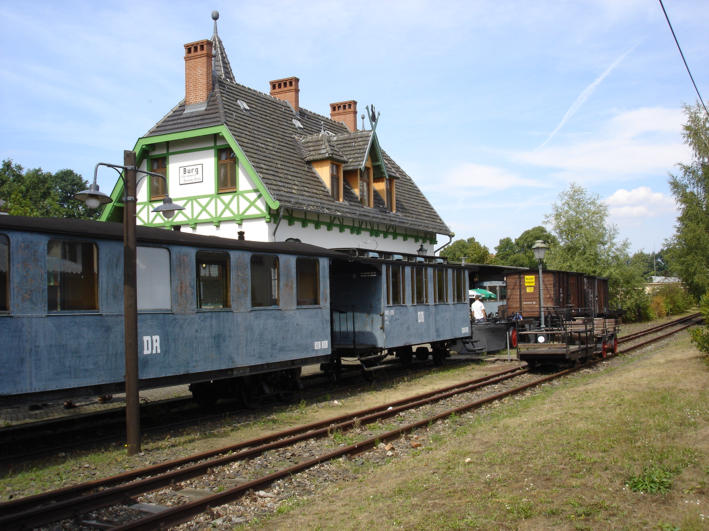 Der nächste Tag steht im Zeichen der Spreewaldgurke. Hauptziel unseres Ausfluges ist der Bahnhof der ehemaligen Kleinbahn in Burg, welcher heute als rustikale Eisenbahnerlebnisgaststätte genutzt wird. Leider finden wir keinen Fensterplatz, denn sonst hätten wir unsere Bestellung per Gartenbahn bekommen. Wenn Spreewald und schönes Wetter dann muss man entweder radeln oder paddeln gehen. |