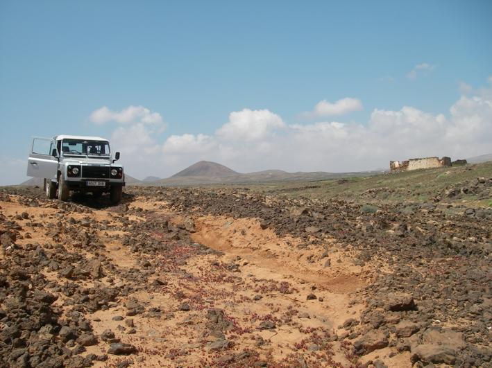 Der nördliche Teil der Insel steht ganz im Zeichen des Kaktusanbaus und der gewaltigen Steilküste des Famara-Massivs. Unsere erste Tour geht direkt von unserem Urlaubsort los. Von Costa Tequise führt ein schmaler Fahrweg parallel zur Küste in Richtung Guatiza. Frisch auf der Insel angekommen nutzen wir jede Gelegenheit für einen Blick auf die schäumende See. Das rustikale Fahrverhalten des Landys passt perfekt zu dem steinigen Umfeld und langsam hoppeln wir über die selten befahrenen Wege. Vor nicht allzu langer Zeit scheint ein wenig Regen gefallen zu sein, denn nicht nur die versteckten Wasserreservoire sind gefüllt, nein auch die Blumen recken sich als Farbtupfer aus der kargen Umgebung. Immer mal wieder laden verlassene Gebäude zu einem Abstecher ein, wobei man nie sicher sein kann, ob es sich nicht doch noch um einen Ziegenstall handelt. |