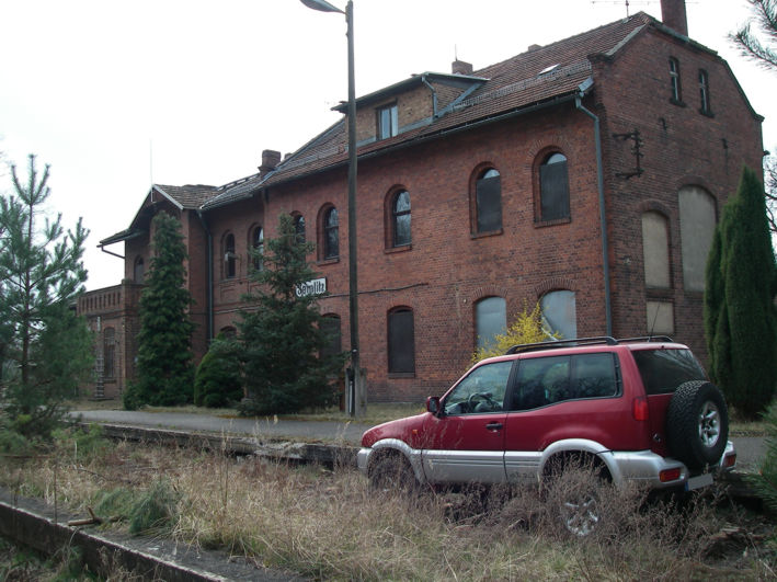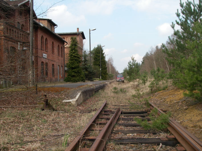 Als echter Glücksgriff erweist sich die Suche nach dem Geocache GC199YF. Sie führt uns zu der stillgelegten Cottbus – Großenhainer Eisenbahn im Bahnhof Jamblitz. Wir erkunden ausgiebig die noch gut erhaltenen baulichen Einrichtungen und dank des Gespräches mit einem freundlichen Anwohner („… das ist das erste mal das hier einer mit seinem Auto parkt …“) werden wir auch gleich auf das nächste interessante Ziel aufmerksam gemacht. Im weiteren Verlauf führte die Bahnlinie Richtung Tauern zu einem gigantischen stillgelegten Truppenübungsplatz, dem wir natürlich einen Besuch abstatten.