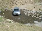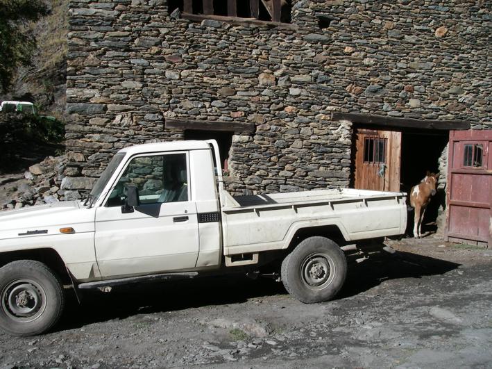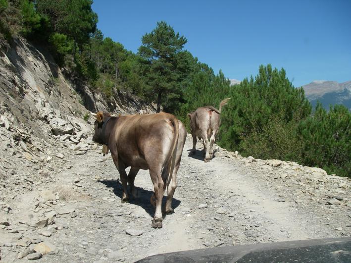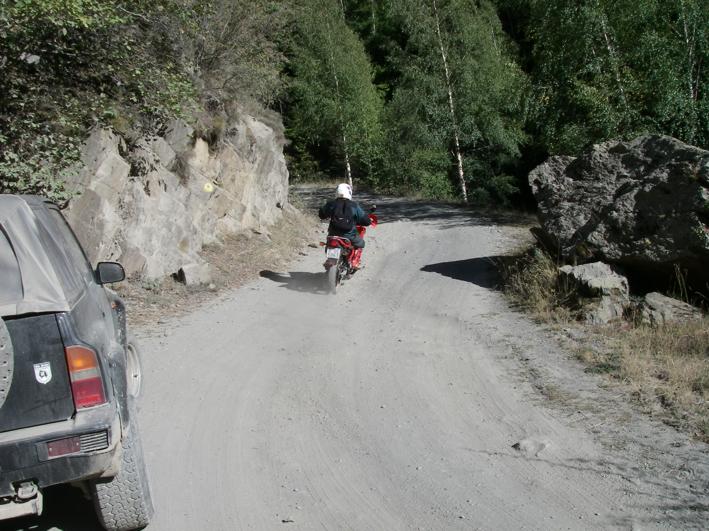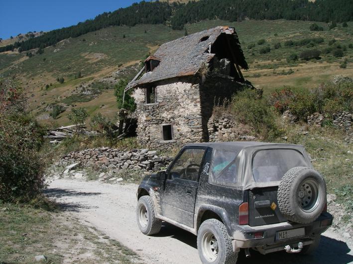 Auf dem bekannten Schmugglerpfad von Alins fahren wir nach Andorrra. Es ist die Tour 11 aus dem OR Heft Pyrenäen, und wir wollen natürlich auch den beschriebenen Fotocache heben. Nachdem wir an einer nach unserer Ansicht passenden Brücke für die Bachdurchfahrt ein paar tiefe Löcher ausgeglichen und auch die Bilder im Kasten haben, stellen wir bei der Weiterfahrt fest, das es auch die nächste Furt sein könnte. Na egal – halt hier auch noch durch, die Querung ist auch ohne Steineschlepperei gut fahrbar. Im weiteren Verlauf beweisen ein Wohnmobil und ein Rentnerpaar im fast neuen Peugeot, das wir für den Hauptweg wieder völlig überausgerüstet sind. Trotzdem sind wir froh genügend Bodenfreiheit zu haben und beneiden auch ein wenig die Einheimischen um Wohnlage und Fahrzeuge. Aber nachdem wir uns die Abgeschiedenheit im Winter vor Augen geführt haben, können wir schon ein wenig beruhigter in das Verkehrschaos in Andorra eintauchen. |