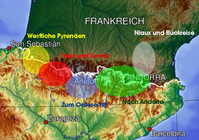 | Ende August 2007 packen wir unseren Vitara voll und machen uns auf den Weg Richtung Iberische Halbinsel. Die Anreise in die Pyrenäen ist recht weit, aber lohnt sich. Es gibt viele interessante Dinge zu entdecken, und vor allem auf der spanischen Seite so manche Offroadmöglichkeit. Die Gebirgs- und Hochgebirgswelt ist faszinierend und das Wetter freundlich. Die touristische Infrastruktur gut ausgebaut, trotzdem findet man einsame Ecken. | ||