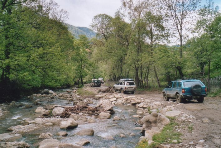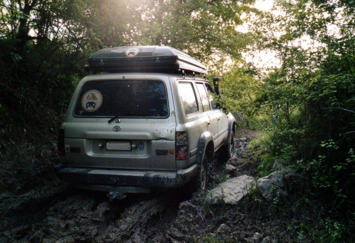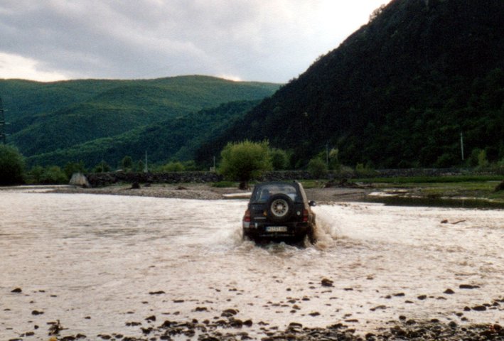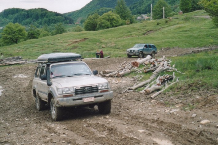 Tag 8 (115 km): Nur wenige Kilometer weiter stehen wir am nächsten Morgen unterhalb der vom deutschen Ritterorden im 13. Jahrhundert gegründeten Burg Bran (Törzburg). Hier soll Vlad Tepes, das Vorbild der Story des irischen Dichters Bram Storker für Graf Dracula, mal übernachtet haben. Die Besichtigung dieser „Einfamilienburg“ mit schöner verwinkelter Gestaltung, übrigens Anfang des zwanzigsten Jahrhunderts die Sommerresidenz von Königin Maria, lohnt sich, hat aber absolut nichts gruseliges an sich. Zum Gruseln sind eher die Angebote der Verkaufsstände unterhalb der Burg, der größte Teil der Waren besteht anstatt aus kernigen Holzpflöcken oder Knoblauchzöpfen aus Plaste - Kitsch. Robby kümmert sich in der Zeit unsere Besichtigung um den platten Reifen des G. Eine Empfehlung wert sind die auch hier angebotenen gezuckerten Teigrollen, welche über einem offenen Grill zubereitet werden. |