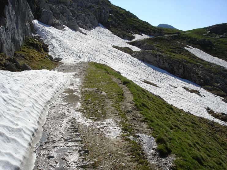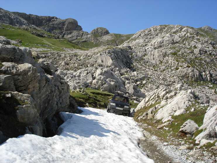 Hinter dem möglichen Ausstieg nach Monesi trafen wir anfangs nur noch einen einheimischen Golffahrer! und dann waren wir allein. An der ersten Schneebrettern auf der Piste kamen wir so vorbei und Enduroreifen zeigten, dass wir nicht die ersten in diesem Jahr waren. Einige Kilometer weiter entschlossen wir uns dann bei den Schneefeldern doch lieber zum "Weg freimachen" - bevor man abrutscht lieber ein wenig bei Sonne schaufeln. Den Murmeltieren boten die lustigen Zweibeiner eine interesannte Abwechslung. | |||