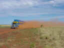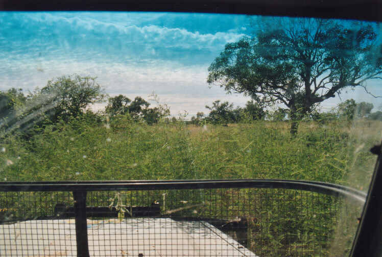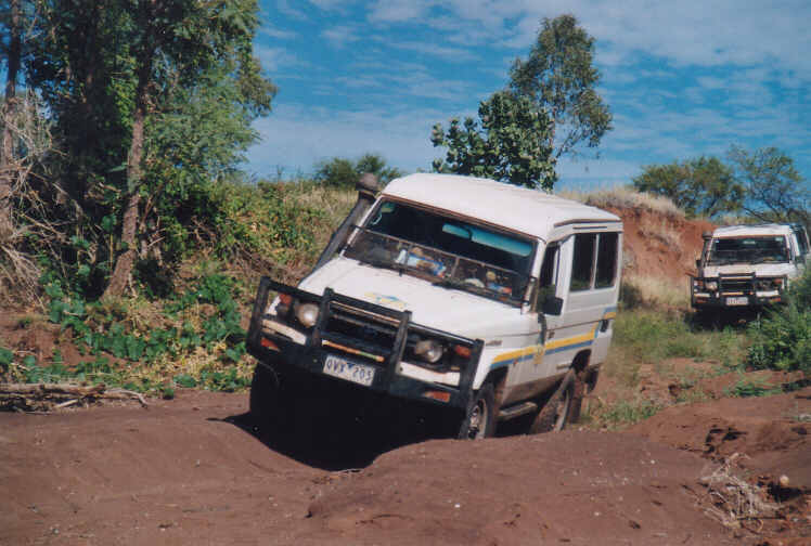 Nach einem guten Frühstück, der Erkundungen alter Minen einem Bad in der Swapit Gorge geht die Fahrt nach Osten. Irgendwann biegt eine kleiner Piste nach links zur Flora Valley Station ab. Der Weg führt am Farmhaus vorbei und ein Gewirr an Wegen verzweigt sich im Nichts. Wir nehmen immer den breitesten, aber zusehends werden die Spuren schmaler. Der Grader ist hier wohl länger nicht lang gekommen, bald kann man den Weg im hohen Gras und Buschwerk nur noch erahnen. In der nächsten Stunde geht es 4WD like nur langsam voran. Ab und zu treffen wir ein paar Wildtiere oder müssen uns mit den Tücken des Weges auseinandersetzen. Es ist Herbst und damit alles easy - bei Regen ist die Piste wohl nicht befahrbar. |