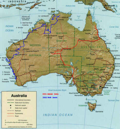 Australien - wer denkt da nicht an Uluru, Great Barrier Reef, Kängurus und endlose Weiten. Wir hatten das Glück und konnten zu viert 2001 und 2003 den fünften Kontinent durchstreifen. Reiseberichte von Down under gibt es wie Sand am Meer, darum hier nur eine kleine Episode von unseren Touren, die vielleicht Lust auf mehr macht. |