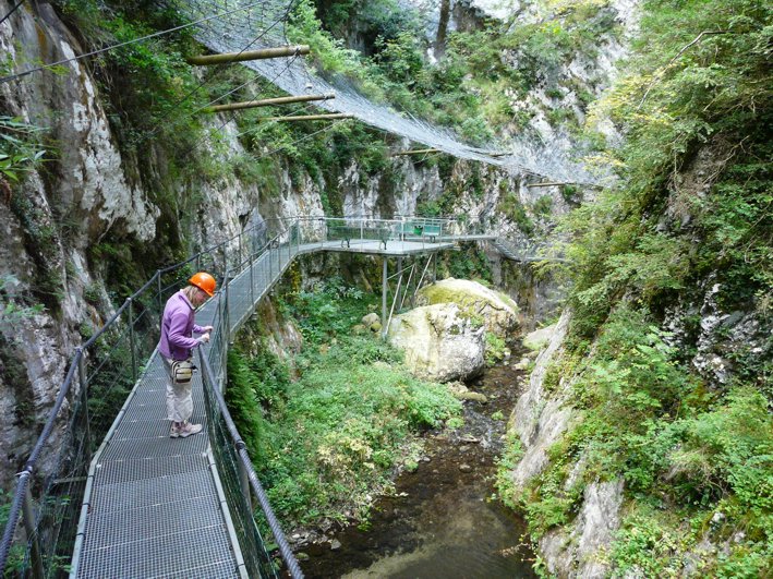 Nicht weit von Arles sur Tech liegt die Gorges de la Fou. Die nach eigenen Angaben engste Schlucht der Welt ist rund 1,7 km lang und an der schmalsten Stelle kann man wirklich beide Felswände gleichzeitig berühren. Die Wände sind bis zu 200 m hoch, aber dank Gitterostwege kann man die Schlucht problemlos erlaufe. Die Sicherheit hat auch ihren Preis – mit den ganzen Netzen und Abstützungen wirkt die Schlucht nicht mehr wirklich romantisch oder natürlich. |
