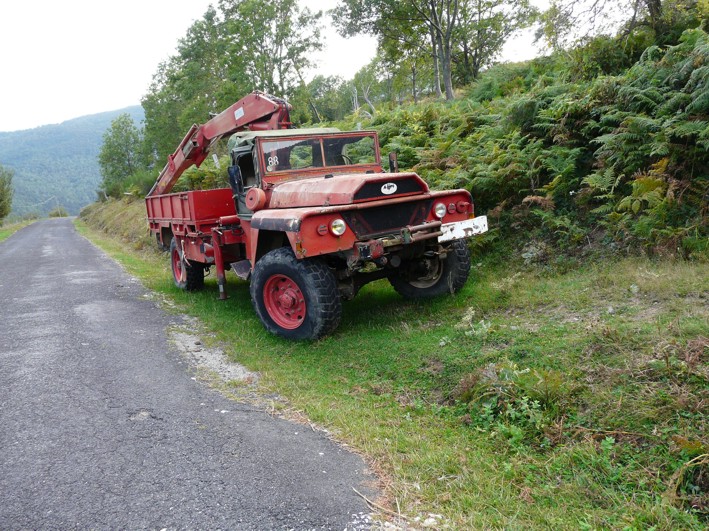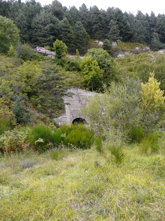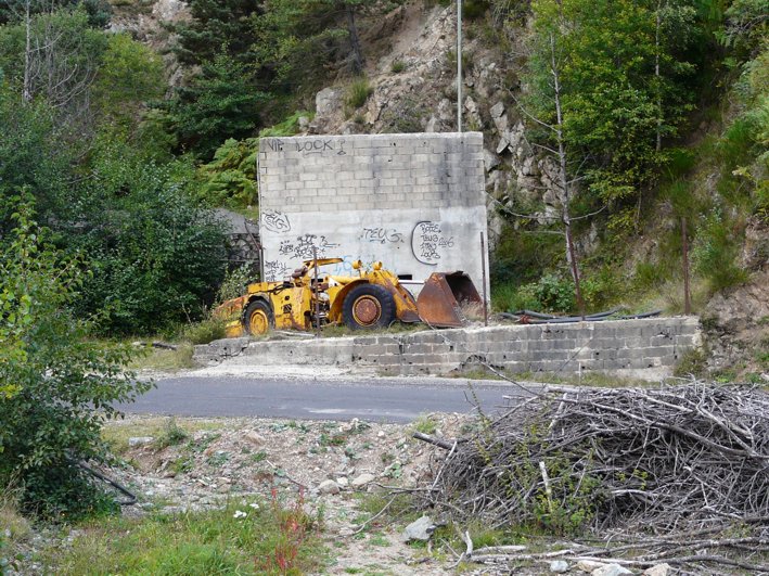 | Danach ist wieder etwas Entdeckergeist gefragt: Unterhalb unseres Wohnheims befinden sich weitere Hinterlassenschaften des Bergbaus. In der untersten Ebene stehen die Reste eines Wellblechgebäudes zur Instandhaltung. Ein paar Schränke sind noch drin – aber im Magazin ist leider die passende Nissan - Steuerkette gerade nicht zu finden. Hinter einem arg mitgenommenen Radlader führt der Weg bis zum zugemauerten Stolleneingang, da waren Großmaschinen im Einsatz. Eine Ebene weiter oben stehen weitere Nebengebäude, das gut zugängliche Stollenmundloch ist scheinbar wieder neu zugemauert worden. Schade – nix mit der erhofften etwas laxerer französischen Sicherheitseinstellung. Eine Chance zeichnet sich einige Meter weiter unten am Fuße der Halde ab. Auch hier lugt ein Portal hervor. Etwas unterhalb führt ein verwachsener Weg relativ easy zu dem Eingang. Fast Bingo – das Portal ist offen, aber ohne Gummistiefel ist für Weicheier wie mich hier auch nichts zu machen. |
