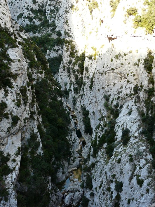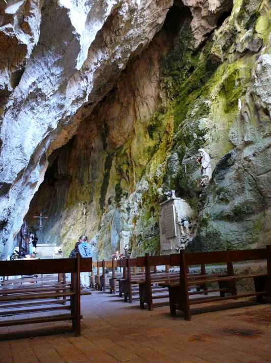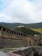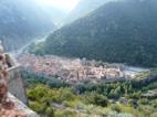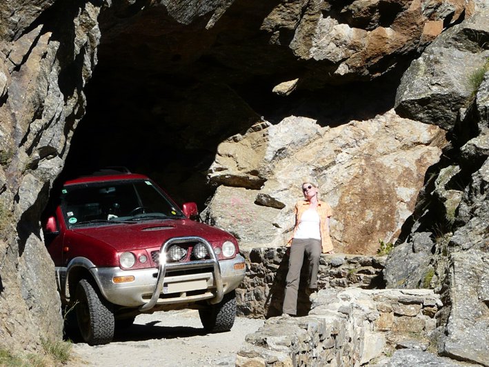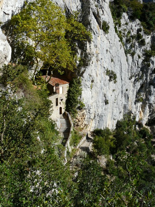 Dieses Chateau unterziehen wir anschließend einer genaueren Inspektion. Die Lage ist imposant auf einem Bergsporn, die Aussicht grandios und „obwohl nur ein paar alte Steine“ lohnt sich der Halt. Die Sehenswürdigkeiten liegen hier alle in greifbarer Nähe, nächstes Ziel ist die Gorges de Galamus. Auf dem Weg dorthin lädt so manch staubiger Weg zum Abbiegen vom schnöden Teerband ein, aber unser angeschlagenes Rennkamel muss geschont werden. Die Straße in der Gorges ist schwindelerregend in den Fels gehauen und für größere Fahrzeuge gesperrt. Kurz vor der Ausfahrt lädt eine Kappelle im Fels noch zu einem Halt und die Bewegung der Füße ein. |