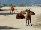 Der Wind hat die Wolken weggeweht, der Regen die Natur auf Hochglanz gebracht. Frohen Mutes kullern wir auf einer Schotterpiste hinab. In St. Marie de Plage (bis in die 60'er Jahre war hier nur Sumpf und es soll 41 verschiedene Mückenarten gegeben haben) hat man Touristenorte aus dem Boden gestampft und wir finden uns auf einem der großen Zeltplätze wieder. Ein mittlerer Sandsturm weht durch das von der Nebensaison geprägte Städtchen. Das aufgewirbelte Meer lädt mit ordentlich Wellengang nicht zum Baden ein. Es wird also nichts mit einem weiteren Strandtag. |