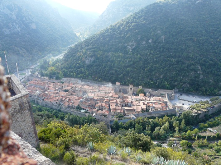 Auf kleinsten Sträßchen – schade hier könnte man anders, aber wir können nicht mehr – fahren wir über Sournia nach Prades. Wir habe die Straße praktisch für uns allein, nur just in dem Moment wo wir zum Fotografieren anhalten, kommt von hinten ein Einheimischer …. |