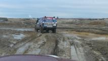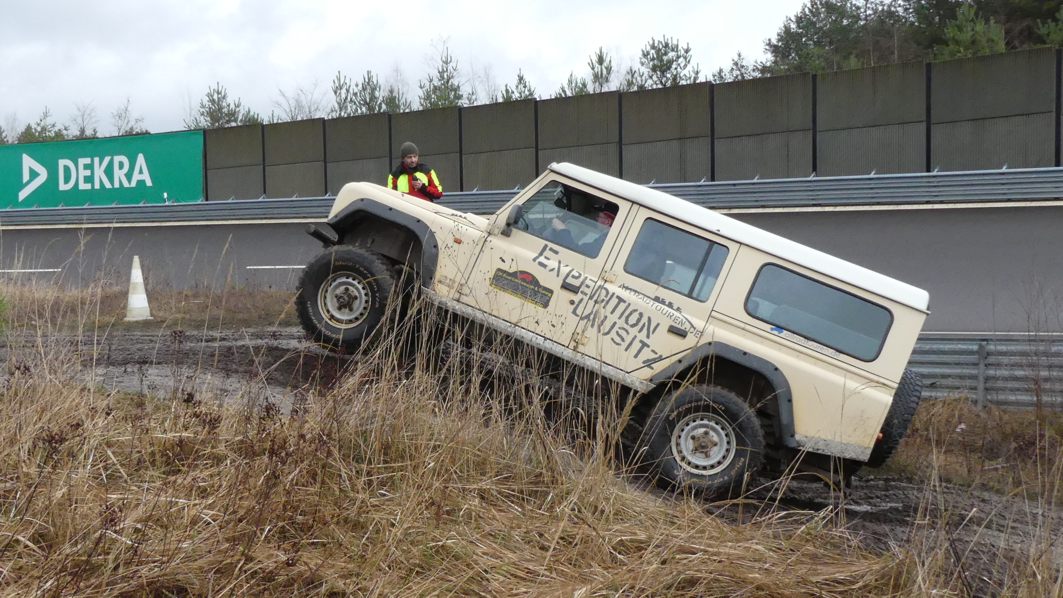 Wir sind mit unserem "Rennkamel" nach intensivem Kontakt mit Oliver - dem Tourguide und Chef vom Ganzen - noch in eine Tour im März hinein gerutscht. Samstag gegen halb Zehn treffen wir uns und bekommen eine intensive Einleitung über das, was wir in den kommenden Stunden erleben werden und noch ein wenig mehr. Mit sieben Mietautos und drei Selbstfahrern ist die Gruppe recht groß, dass macht sich aber über den Tag nicht wirklich als negativ bemerkbar. Die Mietwagen sind schön klassische Geländewagen und keine neumodischen SUV's für den Weg zur Eisdiele, da ist man noch selbst Herr/ Frau am Steuer. Als erstes geht es über schnöden Asphalt und auf Pisten vorbei an stillgelegten Tagebauen zum Offroadgelände am Lausitzring. Während im Hintergrund die Motoren dröhnen, werden wir in die Weihen des Geländefahrens eingewiesen. Das richtige Verhalten an Steilauffahrten, bei kernigen Verwerfungen und beim Schrägfahren wird erst theoretisch erklärt und dann praktisch geübt. "Dank" staubfreier Witterung kann man auch ein wenig im Schlamm wühlen. |